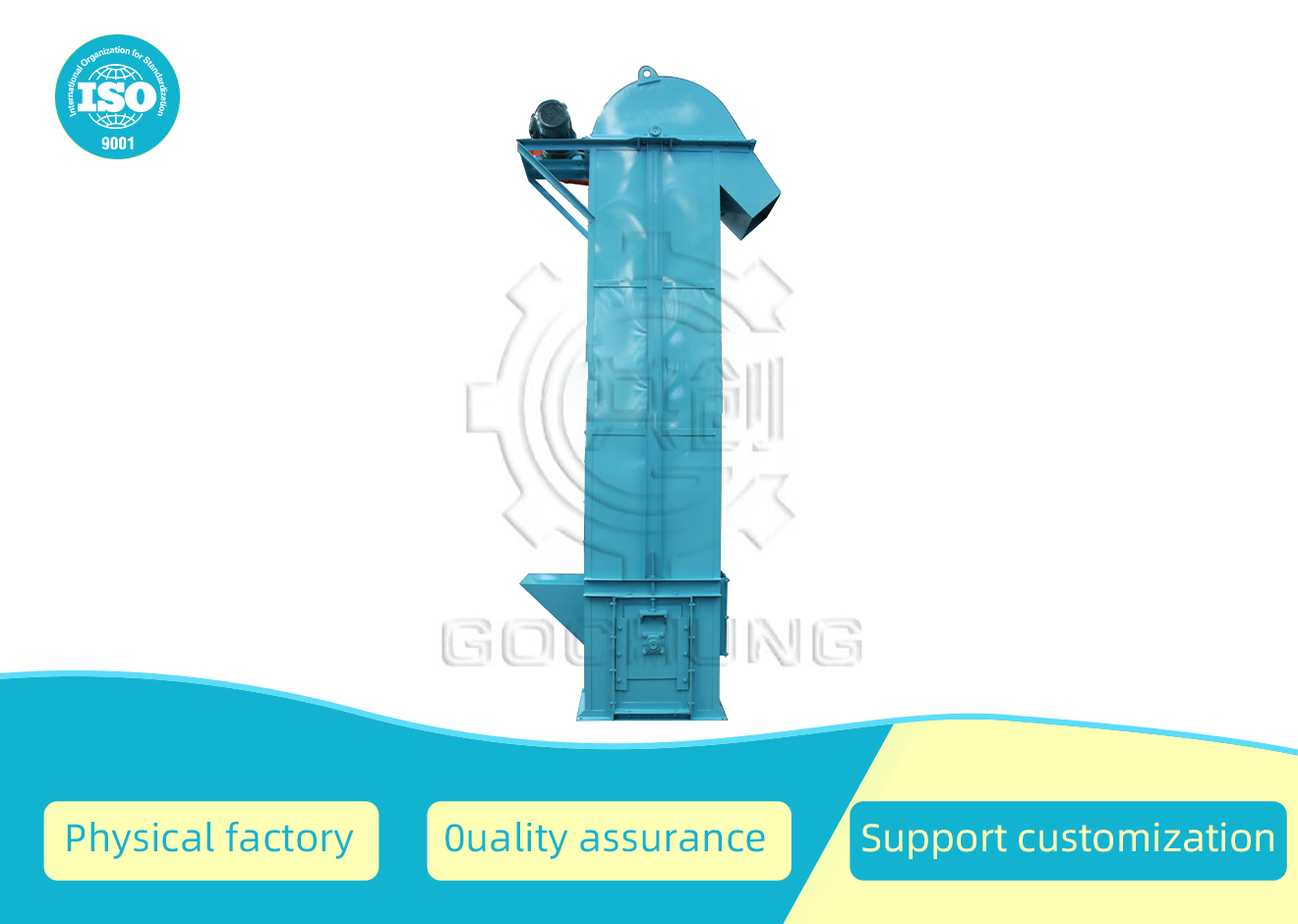 A bucket elevator is a kind of vertical lifting material conveying equipment, used for fertilizer, food, food. eed, mining industry, and other granular and powdered materials vertical conveying. The bucket lifting machine has a small area, high lifting height, large throughput, high transmission efficiency, low power consumption, simple structure, low cost of joint protection, stable operation, a wide range of applications, and good sealing characteristics.