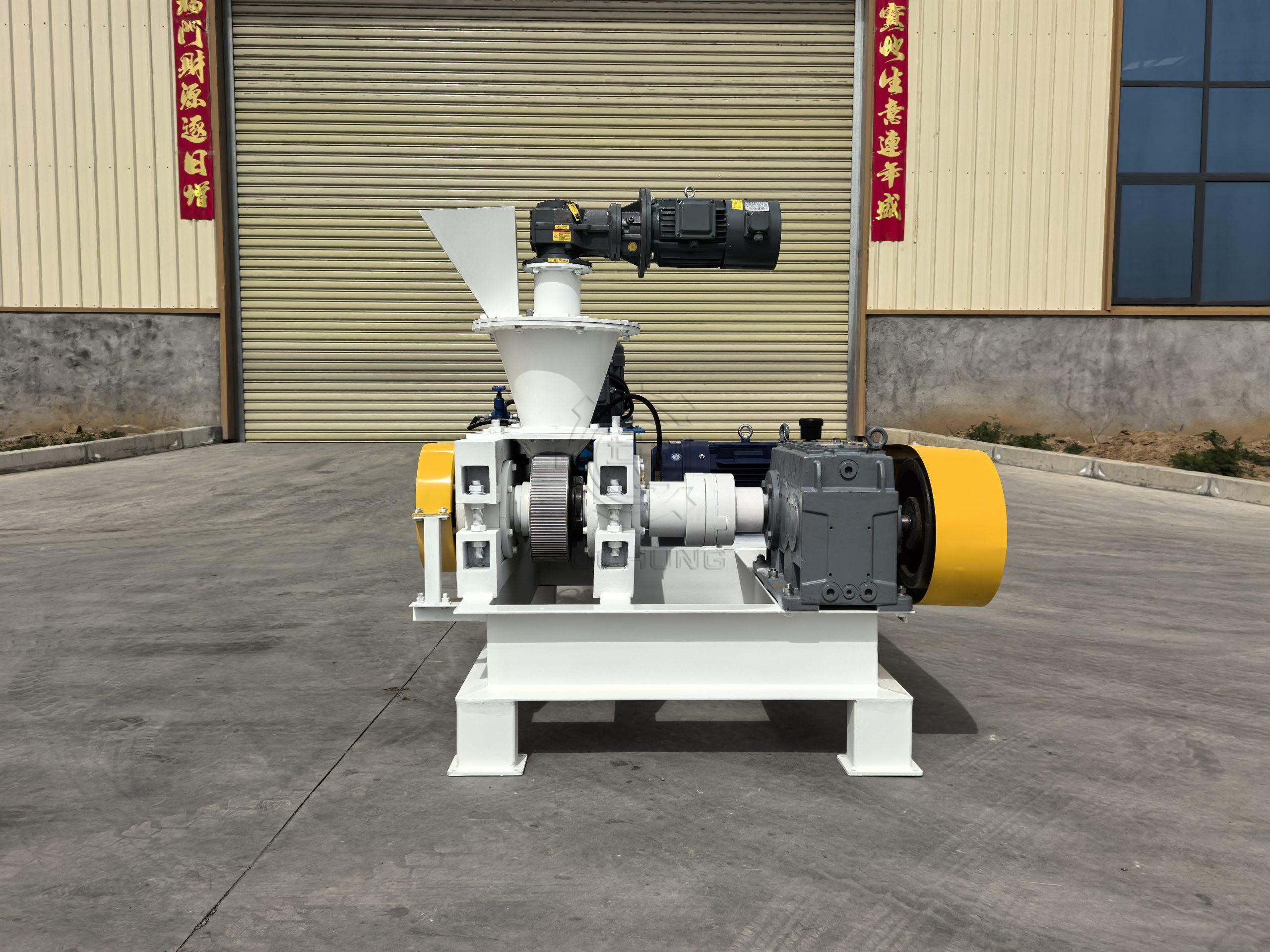 Dry roll granulation mainly relies on external pressure, so the material is forced through the gap between the two relative rotating rollers, forced compression into pieces, in the rolling process, the actual density of the material can be increased by 1.5 to 3 times, to achieve a certain particle strength requirements.