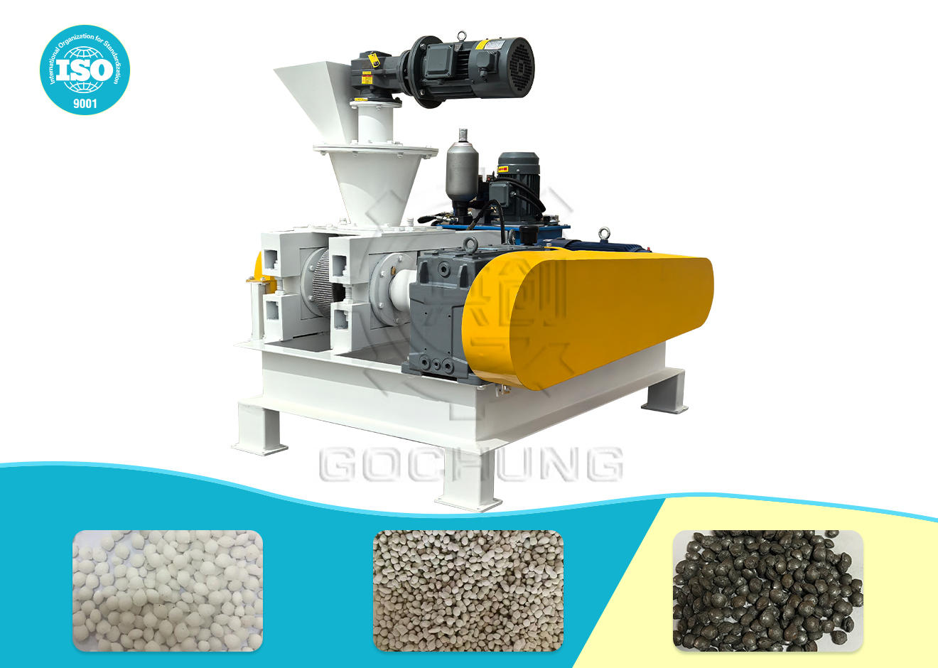 The hydraulic roller granulator adopts dry roll pressing technology to compress the powder material with water content ≤8% into a sheet or block, and then through the crushing and screening process, the block material becomes the granular material that meets the requirements of use.