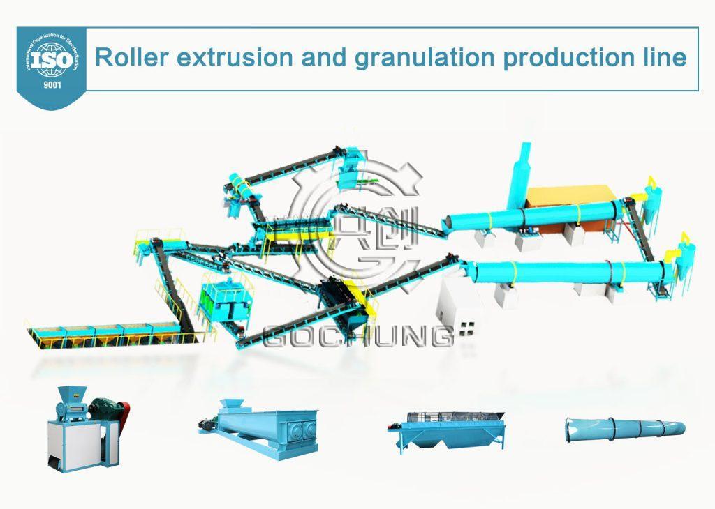 NPK compound fertilizer production line has low investment, quick effect, good economic benefits, one-time molding, dry granulation, suitable for compound fertilizer, medicine, chemical industry, feed and other raw materials granulation, granulation particles, high product granulation rate. It can produce various concentrations and types of compound fertilizers (including organic fertilizers, inorganic fertilizers, biological fertilizers, magnetic fertilizers, etc.). It is especially suitable for the granulation of rare earth and ammonium carbonate series compound fertilizers.