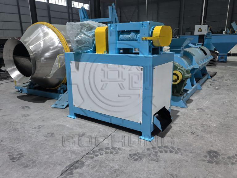 Under the strong extrusion force of the two relatively rotating rollers, the material is pressed into flakes and broken into particles. Subsequently, qualified particles are screened out through a screening system, and unqualified particles are returned for reprocessing.