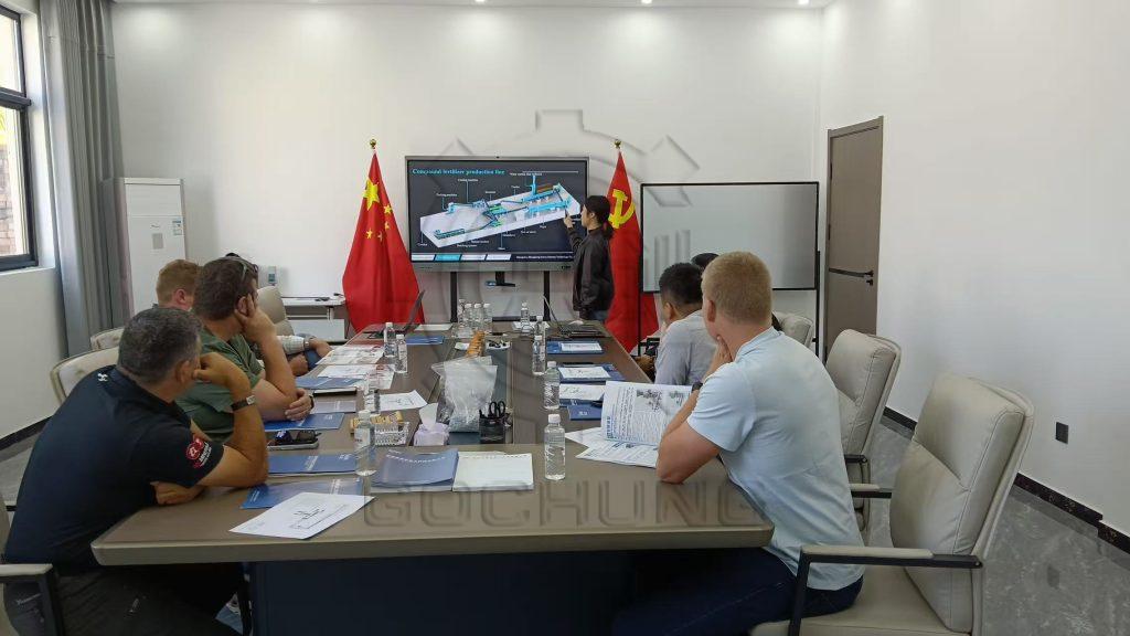 A delegation of South African clients visited our factory and conducted a comprehensive inspection of our BB fertilizer production line. During the tour, our team systematically introduced the entire process flow, including key steps such as raw material proportioning, automatic metering, mixing, and packaging.